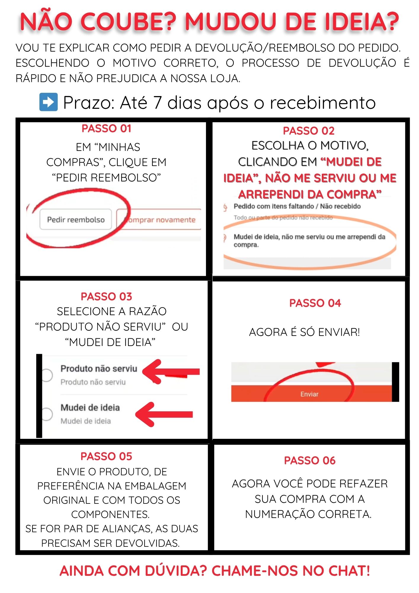 ⚠️ Pedimos atenção na escolha do motivo do reembolso. Qualquer outro motivo prejudicará nossa loja